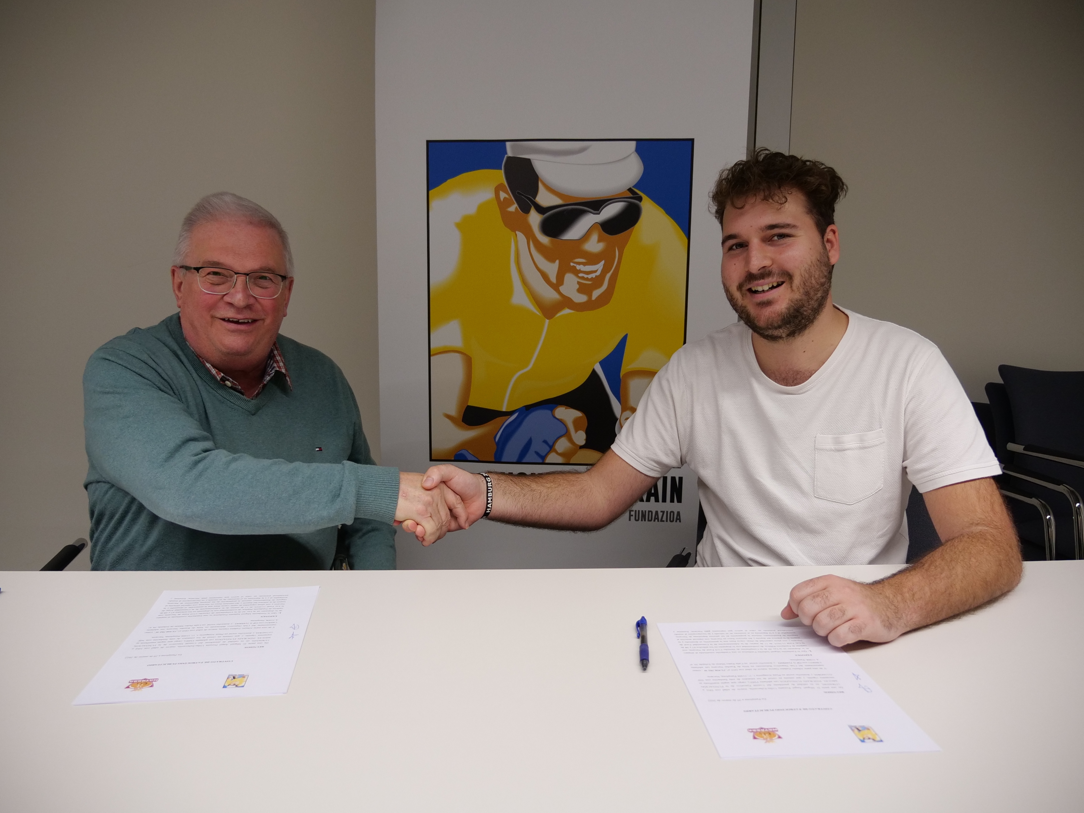 Firma del acuerdo de patrocinio entre la Fundación Miguel Indurain Fundazioa y el Club Baloncesto Silla de Ruedas Navarra