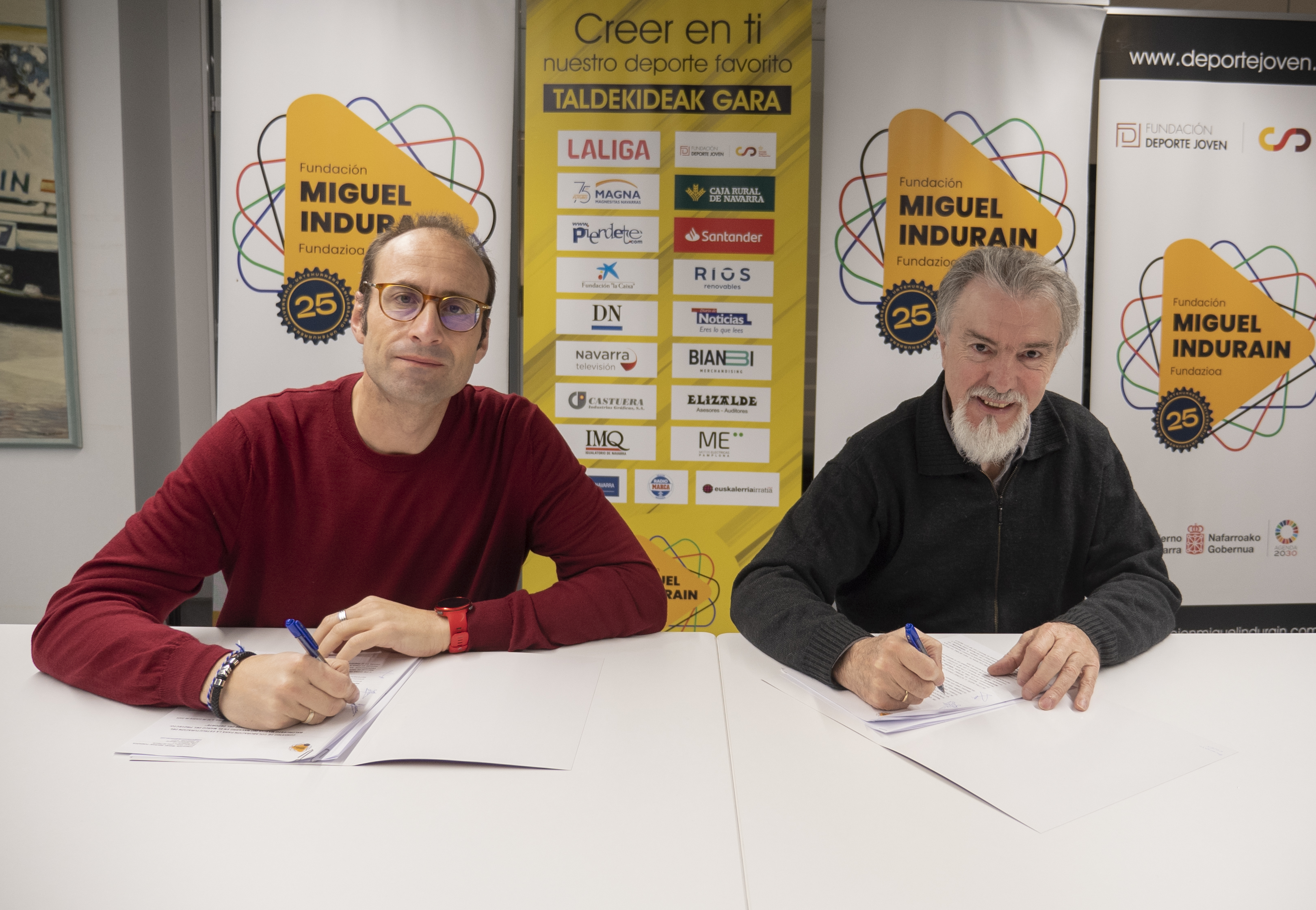 La Fundación Miguel Indurain Fundazioa (FMIF) continúa consolidando su compromiso con el desarrollo del deporte en Navarra. El pasado lunes se firmó un nuevo convenio de colaboración entre la FMIF, el Club de Baloncesto Valle de Egüés (CB Valle de Egüés) y la Federación Navarra de Baloncesto.