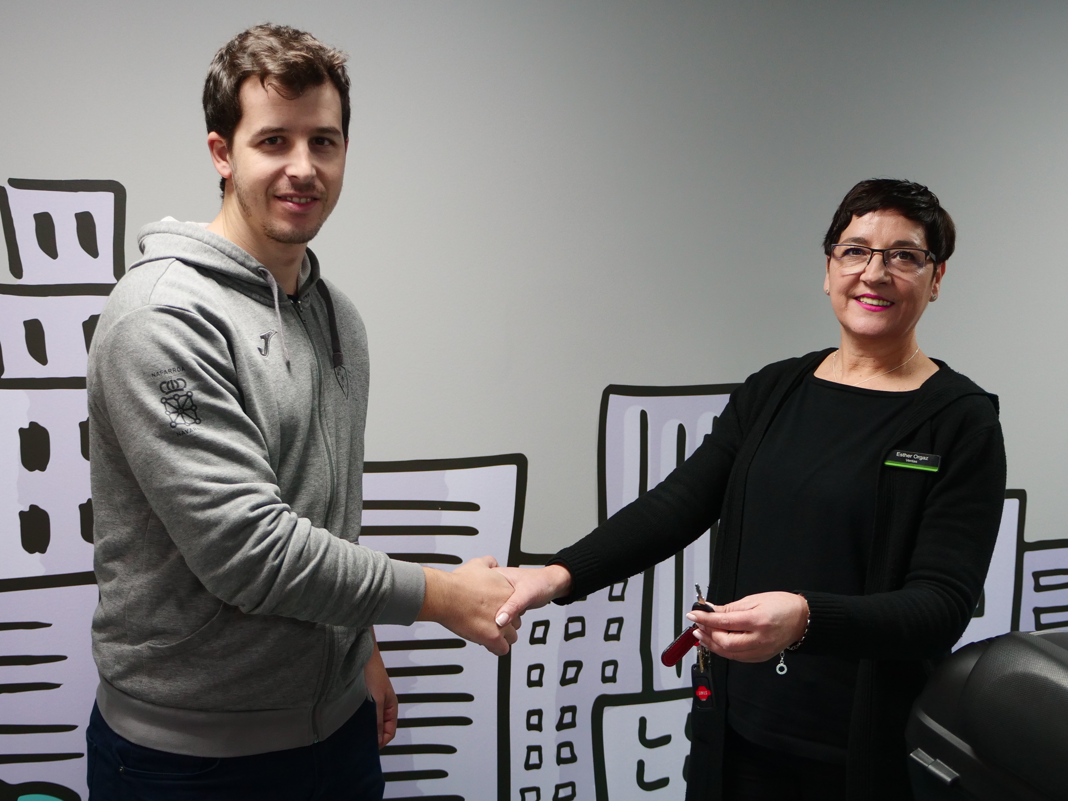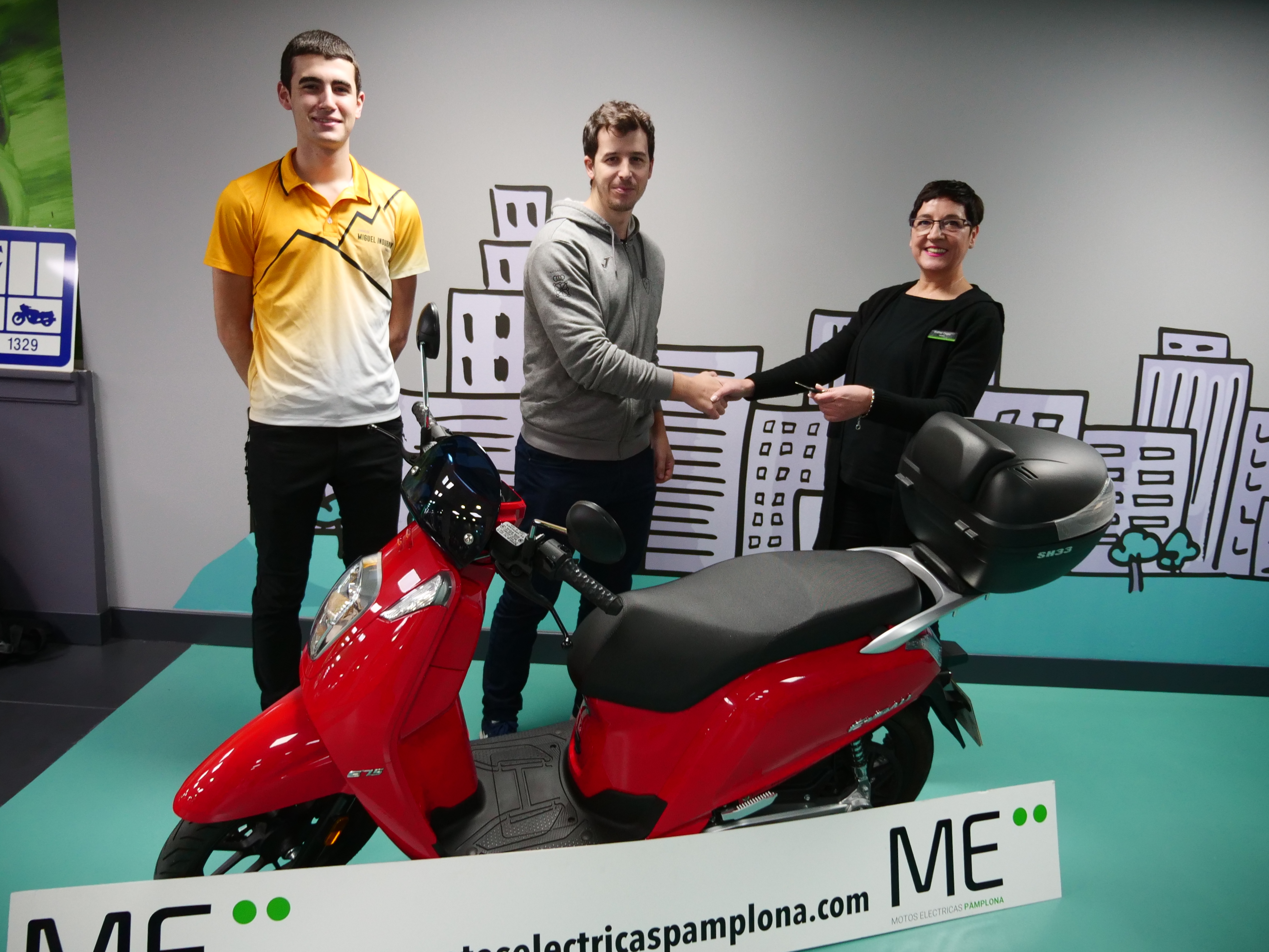 La empresa Puro Racing ha cedido a la Fundación una moto eléctrica para utilizar en el velódromo Miguel Indurain de Tafalla para los entrenamientos de ciclismo en pista. Acudió a recogerla Sergio Aliaga, ex cilista y técnico de ciclismo de la selección navarra en pista y colaborador con la selección española.