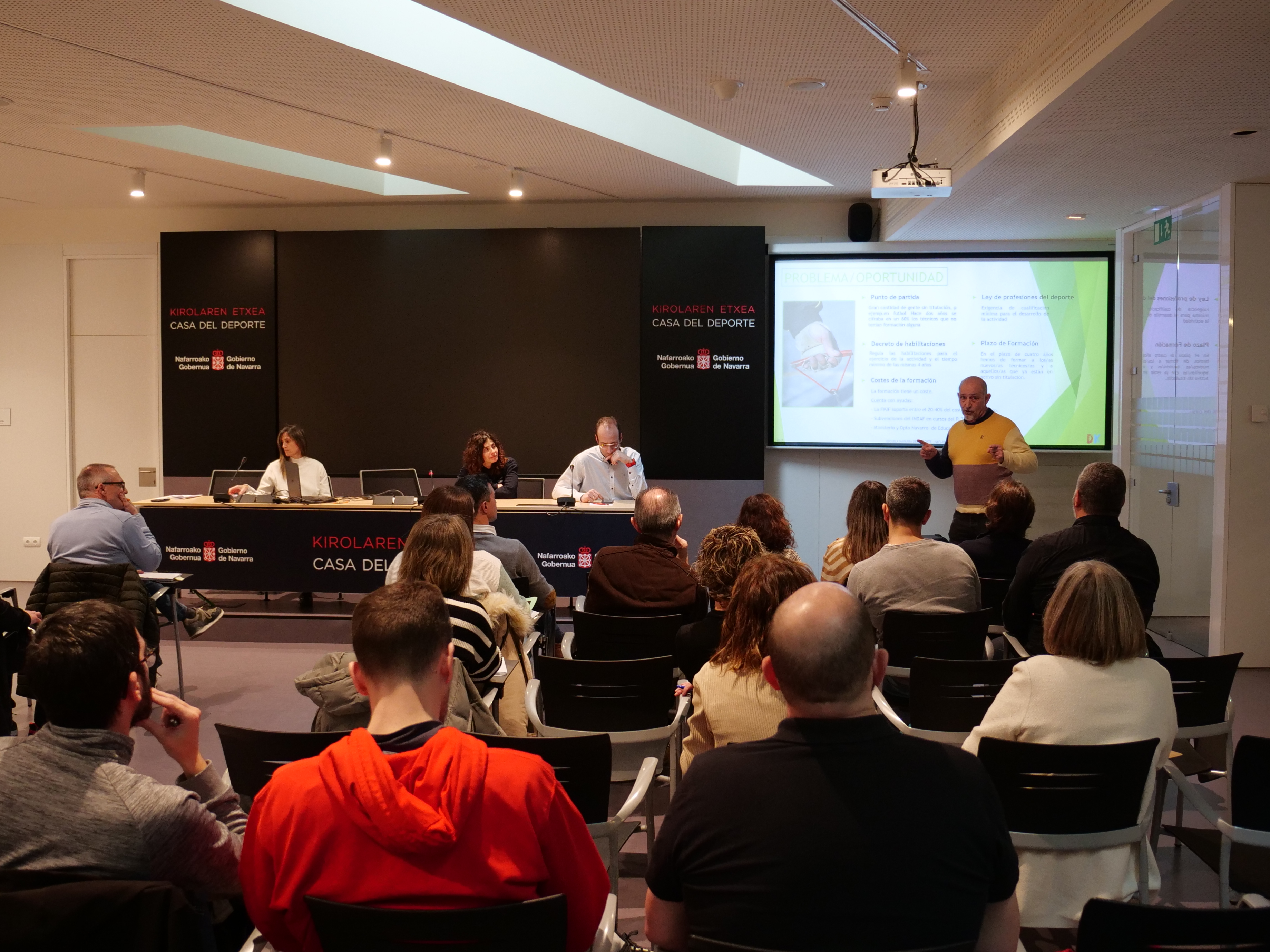 El plan formativo diseñado por la Fundación Miguel Indurain Fundazioa a través de la Escuela Navarra del Deporte, ante el reto de adaptarnos a la Ley de Profesiones del Deporte y la Ley de Habilitaciones, ha sido presentado esta mañana en la Sala de Prensa de la Casa del Deporte.