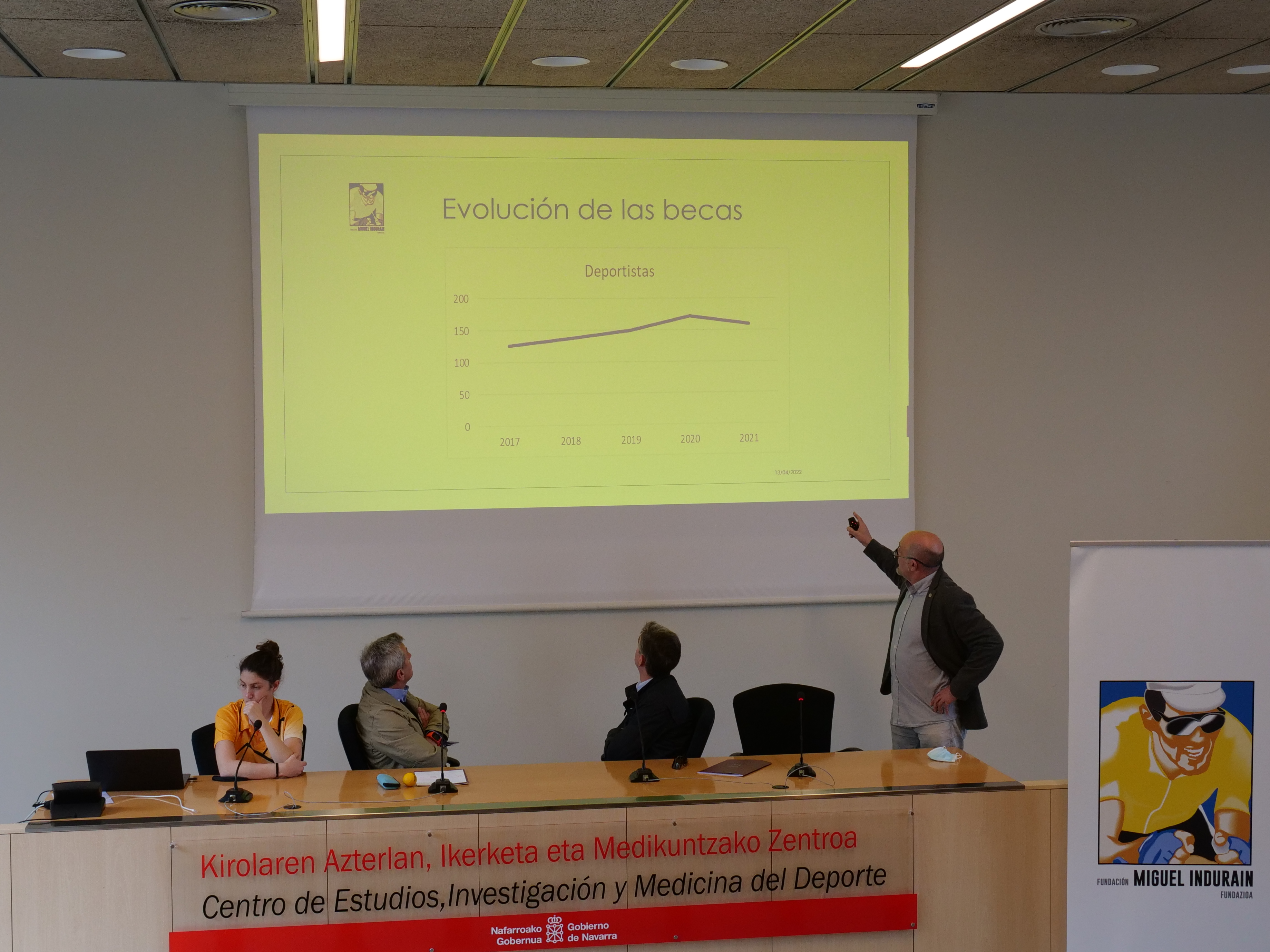 La Fundación Miguel Indurain Fundazioa ha presentado esta mañana las becas correspondientes al año 2022. Lo ha hecho en el CEIMD (Centros de Estudios, Investigación y Medicina del Deporte) con la presencia del gerente de la Fundación Miguel Indurain Fundazioa, Ernesto Modrego; el subdirector de infraestructuras deportivas del Instituto Navarro del Deporte y miembro del Comité Ejecutivo de la FMIF, Ramón Santesteban; Miguel Rodríguez, presidente de Deporte Adaptado y becado en tiro; y Haitzea Zamora, becada por pelota.