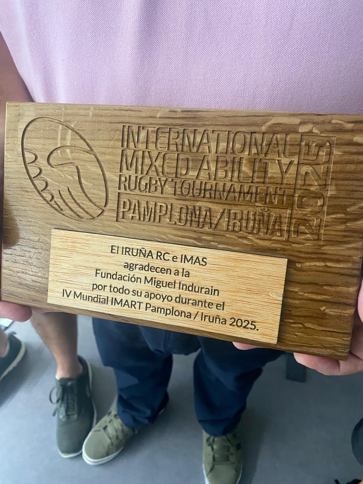 La Fundación Miguel Indurain Fundazioa ha recibido este miércoles un gesto de agradecimiento por su implicación en la organización del IMART (International Mixed Ability Rugby Tournament), uno de los mayores eventos internacionales de deporte inclusivo, que tuvo lugar en Pamplona del 22 al 27 de junio.