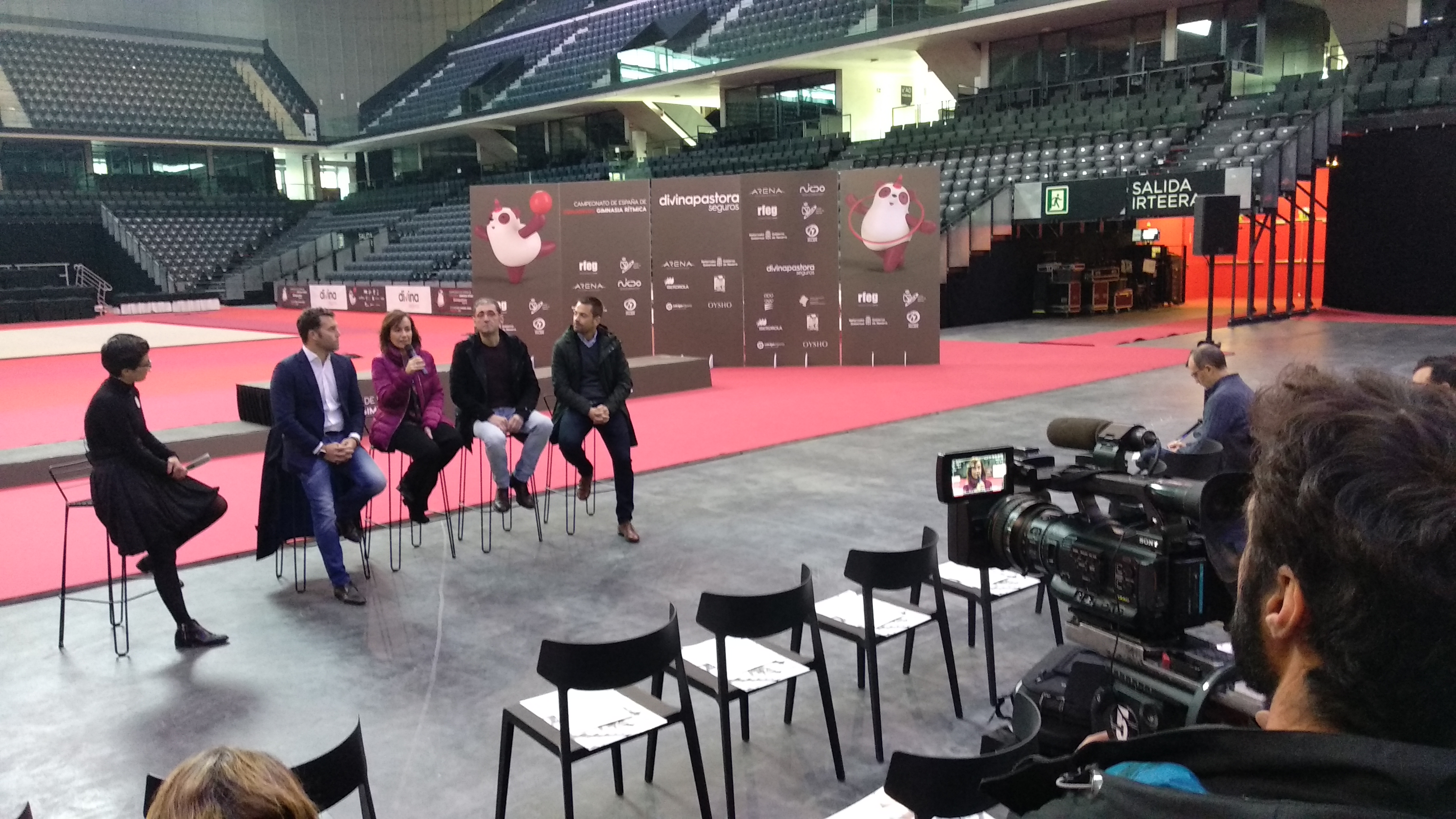 La presentación celebrada hoy en la pista central del pabellón ante los medios de comunicación ha contado con Jesús Carballo, presidente de la Real Federación Española de Gimnasia (RFEG); Josu Ros, presidente de la Federación Navarra de Gimnasia (FNG); Ana Herrera, consejera de Cultura, Deporte y Juventud; y Moncho Urdiáin, director de Navarra Arena. Les ha acompañado, Pandi, la mascota de la gimnasia rítmica de Navarra.