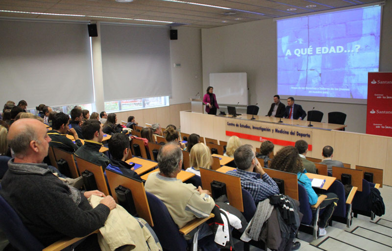 Este sábado, 23 de noviembre a las 10:00 horas, tuvo lugar en el Salón de Actos del C.E.I.M.D. una jornada formativa, patrocinada por Banco Santander, diseñada especialmente para todos los deportistas del programa de Jóvenes Talentos Deportivos 2013 de la Fundación Miguel Induráin.